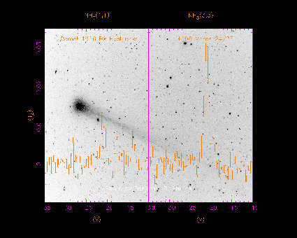 The spectra are displayed below against a backdrop of a photo of the comet